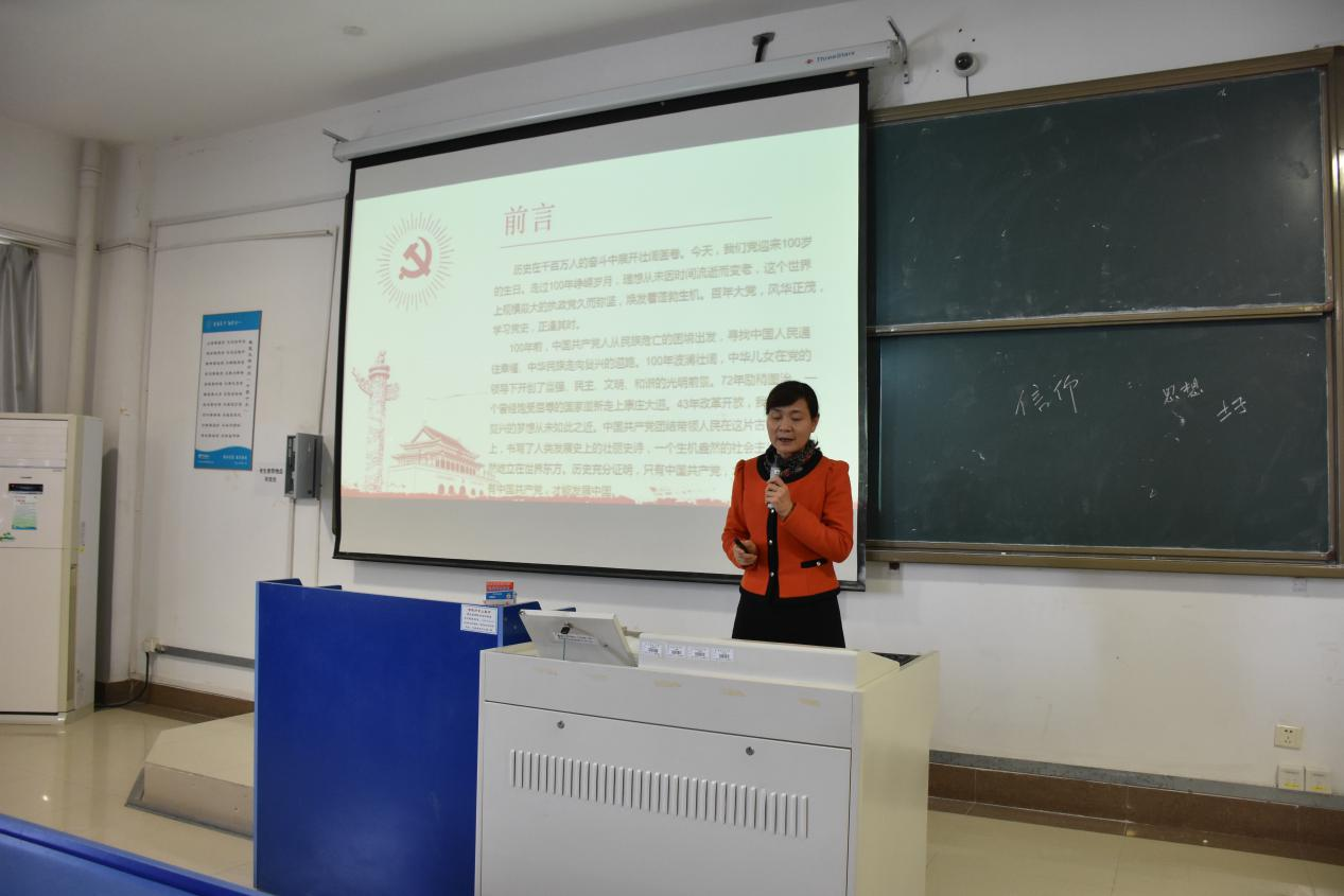 随后,郑支农以“知史爱党 永远跟党走——党的百年光辉历程”为主题,围绕党史学习教育开展第一讲。她首先强调了学习党史的重要意义,重点介绍了中国共产党的百年光辉历程,倡导学员们要知史爱党、永远跟党走,做到学史明理、学史增信、学史崇德、学史力行。她强调,开展党史学习教育,是牢记初心使命、推进中华民族伟大复兴历史伟业的必然要求,是坚定信仰信念、在新时代坚持和发展中国特色社会主义的必然要求,是推进党的自我革命、永葆党的生机活力的必然要求。广大学员要在党史学习教育中,不断坚定理想信念,从红色基因中汲取强大的信仰力量,进一步增强“四个意识”,坚定“四个自信”,做到“两个维护”。要认真践行党的初心使命,勇于攻坚克难。要坚持学党史、悟思想、办实事、开新局。要实学实干,在攀登知识高峰中追求卓越,在肩负时代重任时行胜于言,在真刀真枪的实干中成就一番事业。广大入党积极分子和发展对象要时刻以党员的标准严格要求自己,在学习党史、“党的基本知识”的同时一定要积极参加社会实践与志愿服务。坚定理想信念,锤炼党性修养,进一步端正入党动机,争取早日成为一名合格的共产党员。